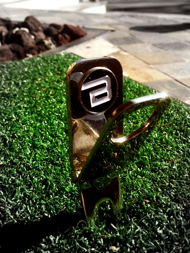Why have one thing that does one thing... when it can do three. The Balszac Widget is a divot tool, has a magnetic ball mark and can hold your cigar or keep your club off the ground... your choice.